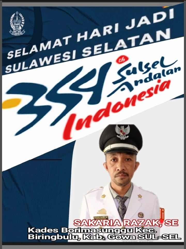 Sakaria Razak, SE Kepala Desa Borimasunggu Kecamatan Biringbulu Kabupaten Gowa Mengucapkan Selamat Hari Jadi Provinsi Sulawesi Selatan ke-354 Tahun